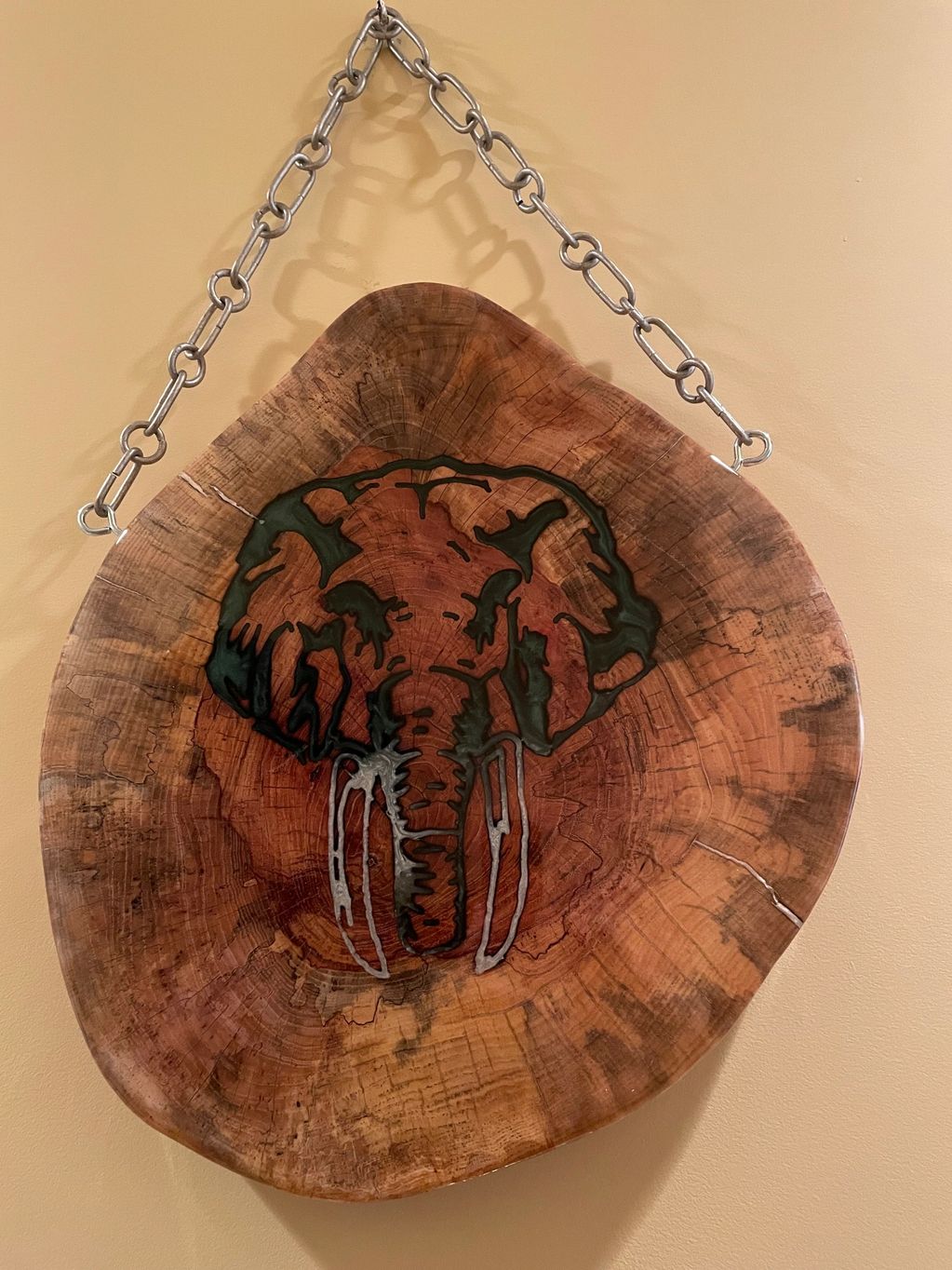 Emerald Green Elephant on Pecan Wood