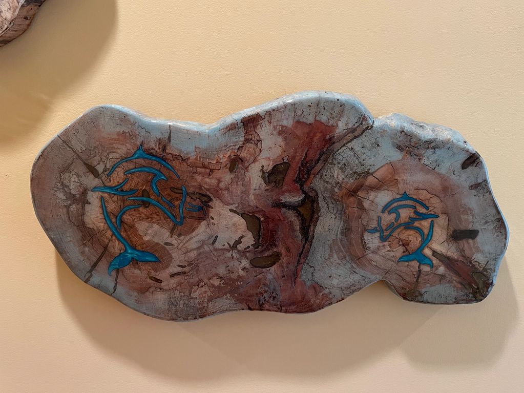 Double Dolphins on Pecan Wood