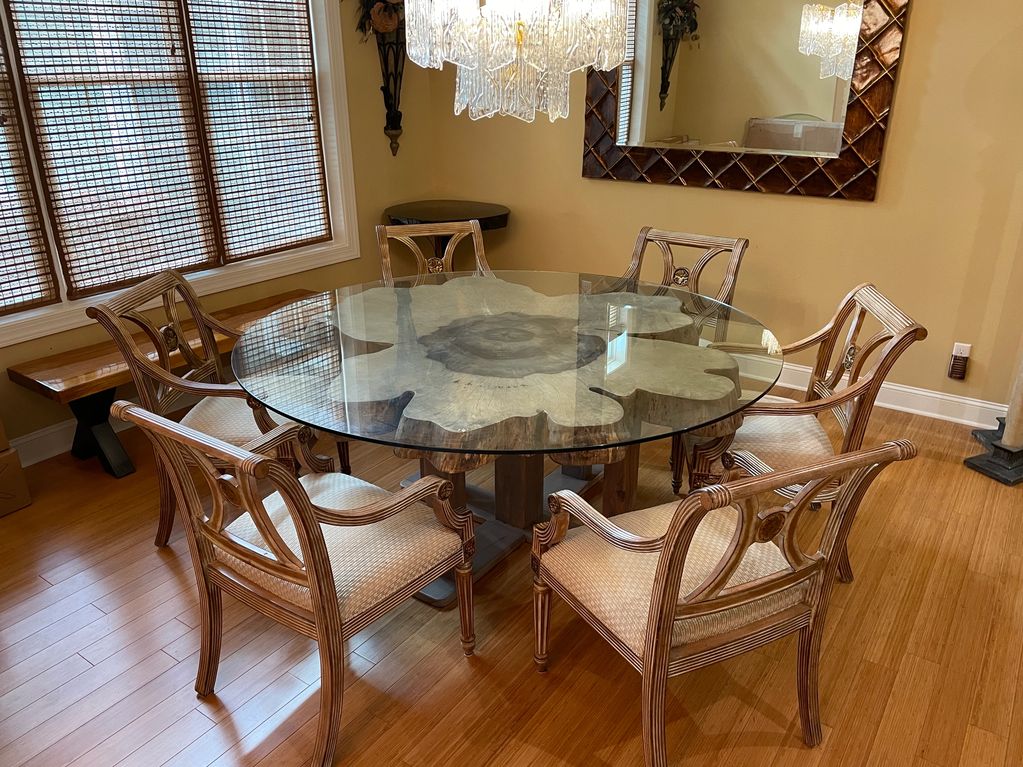 Magnolia Dining Table with Hickory Legs with Glass Top