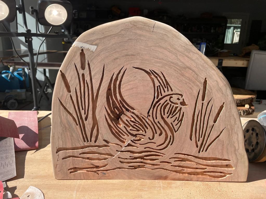 Swan Catails and water on cherry wood