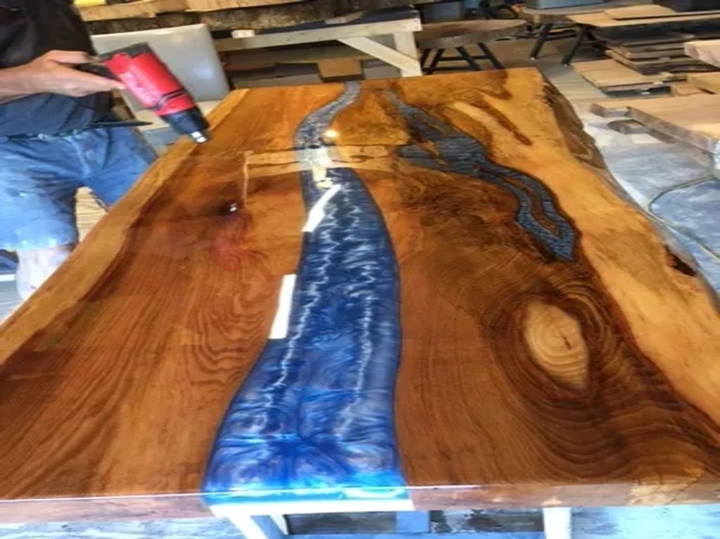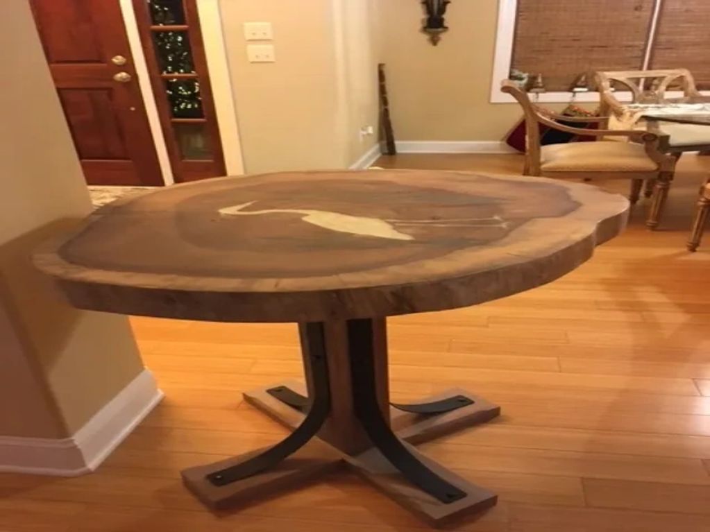 Live Edge Hickory Dining Table with Epoxy accents