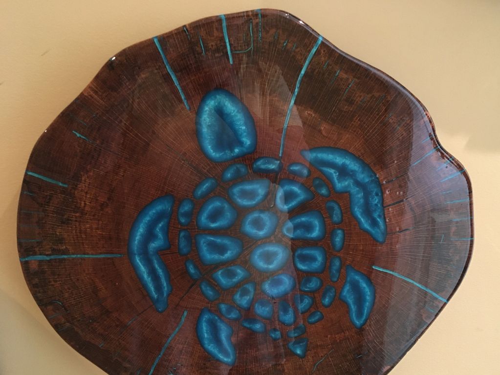 Blue Seaturtle on Pecan Wood